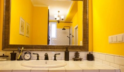 Справа розташувався вимикач бра над дзеркалом і пара розеток.