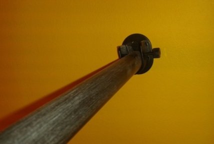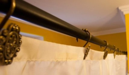 Палка для штори насправді - карниз з Ікєї, закріплений на півкільцях. Тримається просто намертво, дуже рекомендую такий тип конструкції.