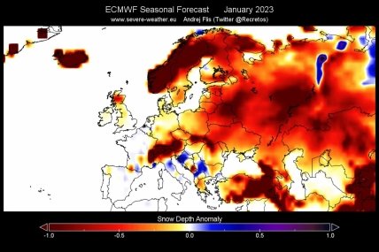У січні слід очікувати невелих погодних змін. Більша частина Європи до середини місяця матиме меншу висоту снігу. Цікаво, що саме в районі Центральної та Західної Європи снігу навпаки побільшає.