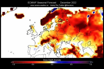 Прогнозом погоди на зиму 2022−2023 поділився експерт Andrej Flis. Він пеціалізується на довгостроковому прогнозуванні сезонної погоди, погодних тенденцій, глобальної взаємодії океану та атмосфери та зміни клімату. За останнім прогнозом, в Україні цієї зими снігу ще менше, ніж було торік. У південно-західних областях країни показник сніжних опадів буде ще нижчий за норму. На щастя, на півдні Херсонської області, у Криму та Одеській області кількість снігу відповідатиме нормі. Це точно позитивно відобразиться на майбутньому врожаї.