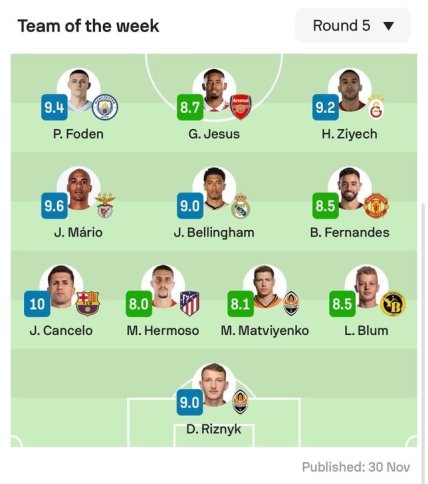 Статистичний портал SofaScore включив до символічної збірної п’ятого туру захисника Миколу Матвієнка, а також воротаря Дмитра Різника. Обидва футболісти провели повний матч у футболці "Шахтаря".