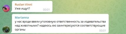 У мережі вчинок неповнолітньої живодерки не залишили поза увагою. Небайдужі громадяни писали, що за таку поведінку з тваринами існує кримінальна стаття, і дівчину необхідно ізолювати від суспільства. Варто зазначити, що відео, на якому дівчинка жорстоко поводиться з твариною, зібрало понад 2 тисячі коментарів у Telegram і більшість користувачів були вкрай негативно налаштовані.