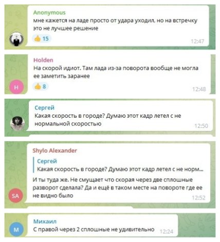 У мережі розійшлися в думках чия вина суттєвіша у скоєнні ДТП. Частина користувачів захищає водія "швидкої", мовляв, він міг їхати на виклик, їм опонують відсутністю включених спецсигналів. З приводу другого учасника ДТП зійшлися, що він виїхав на зустрічну смугу, намагаючись уникнути зіткнення.