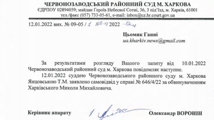 Про самовідведення вона заявила 12 січня — за тиждень до підготовчого засідання суду.