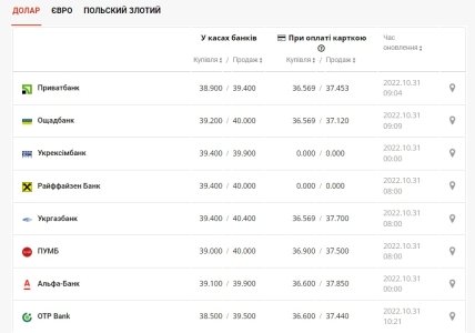 На 1 листопада Національний банк України встановив офіційний курс гривні до американського долара на рівні 36,57 грн за долар. Курс долара виріс на 0 коп. На чорному ринку купити долар можна на 38 коп. дорожче, продати — на 43 коп. дорожче в порівнянні з минулою добою.
