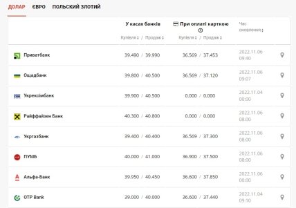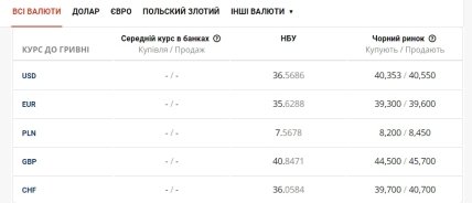 На понеділок, 7 листопада, Національний банк України встановив офіційний курс гривні до американського долара на рівні 36,57 грн за долар. На чорному ринку валюту США можна придбати за 40,35 грн, продати — за 39,60 грн.