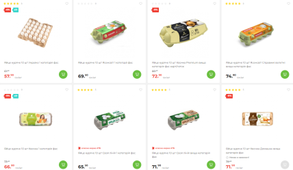 Так, наприклад, у "АТБ" мінімальна ціна на десяток курячих яєць становить 57,90 грн. Натомість найвищий цінник на сьогодні — 74,90 грн/10 шт.