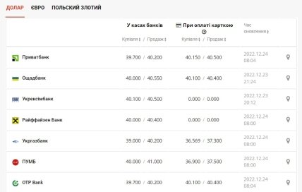 У суботу, 24 грудня, Національний банк України встановив офіційний курс американського долара до гривні на рівні 36,56 грн. На чорному ринку валюту США купують за 40,30 грн, продають — за 40,47 грн.
