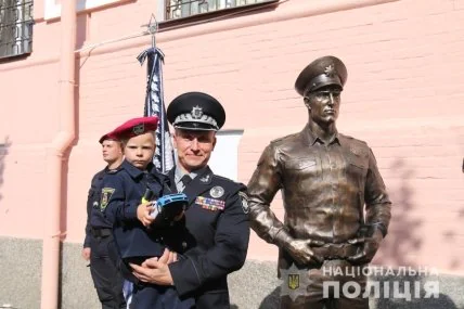 У Києві у п’ятницю, 20 серпня, до Дня Незалежності України урочисто відкрили памʼятник на честь діючих поліцейських — "Бронзового капітана". Відкривав статую глава Нацполіції Київщини Андрій Нєбитов, однак вже на наступний день її без пояснень закрили синім наметом.