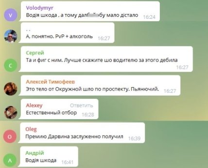 У мережі вказали, що пішохід був п’яний, а деякі припустили, що він знаходився в стані наркотичного сп’яніння. Здебільшого коментатори встали на сторону водія.