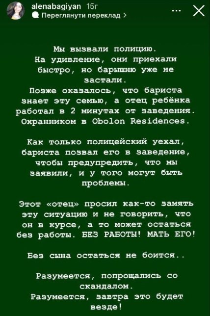 Пізніше стало відомо, що бариста закладу знає цю родину та батька дитини. Він працює охоронцем у  ЖК "Obolon Residences", який розташований за дві хвилини ходьби від кафе.