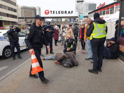 У Києві серед білого дня чоловіка вдарили ножем в натовпі: ексклюзивні фото