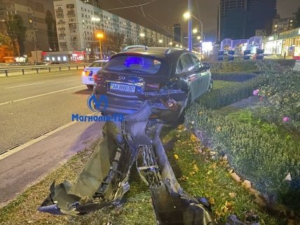 Іномарка Infinity на досить великій швидкості знесла частину відбійника, через що автомобіль з лівої смуги викинуло вправо на клумбу. Після інциденту всі присутні в автомобілі пересіли в іншу машину і покинули місце аварії.