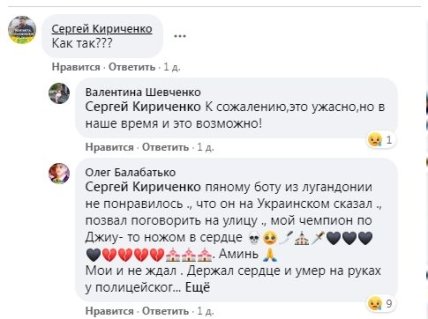Балабатько додав, що Микола був чемпіоном з джиу-джитсу, а тому був упевнений у своїх силах, коли вбивця викликав його "вийти поговорити".