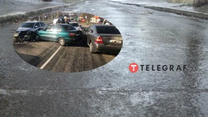 На замерзлій після ночі поверхні дорожнього покриття зіткнулися відразу три автомобілі марок Daewoo, Skoda і Toyota. За попередніми даними, внаслідок інциденту є постраждалі.