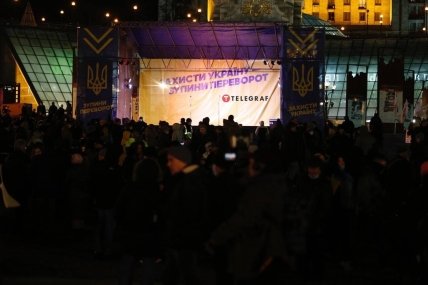 У Києві в середу, 1 грудня, проходить акція "Захисту Україну — зупини переворот", під час якої демонстранти збираються на Майдані Незалежності, а потім рушать на Банкову.