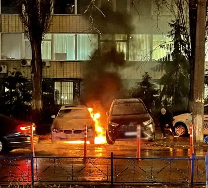 В пʼятницю під вечір вогонь "поласував" припаркованим "БМВ" та позашляховиком, повідомляє кореспондент "Телеграфу".