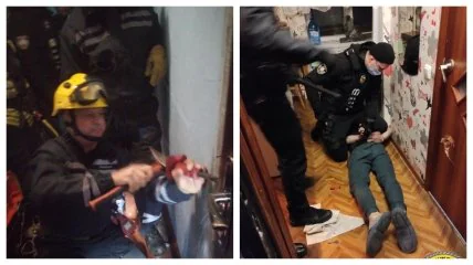 Чому постраждала сама не зателефонувала копам, не повідомляється. Проте після дзвінка від її матері на місце події — до одного із будинків у провулку Межовому — виїхав наряд поліцейських. Через те, що дебошир відмовився впустити правоохоронців, копи викликали на допомогу рятувальників.
