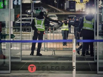Поки літак ще не прибув, правоохоронці гріються в місцевих магазинчиках.