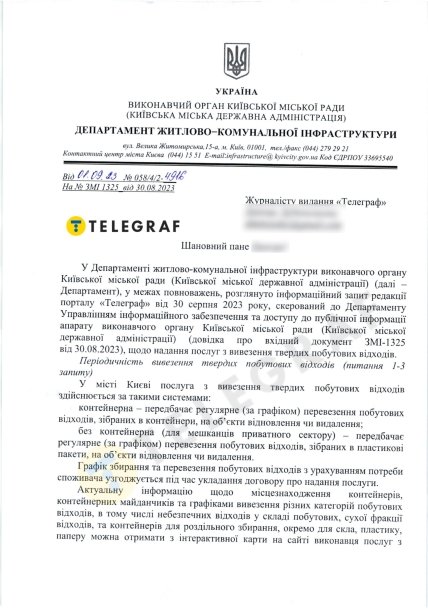 З Києва щороку офіційно вивозять понад мільйон тонн побутового сміття, а графіки вивезення залежать від договорів, укладених мешканцями чи балансоутримувачами з сміттєзбиральними компаніями. Про це у відповіді на запит "Телеграфу" повідомили в Департаменті житлово-комунальної інфраструктури Київміськдержадміністрації.
