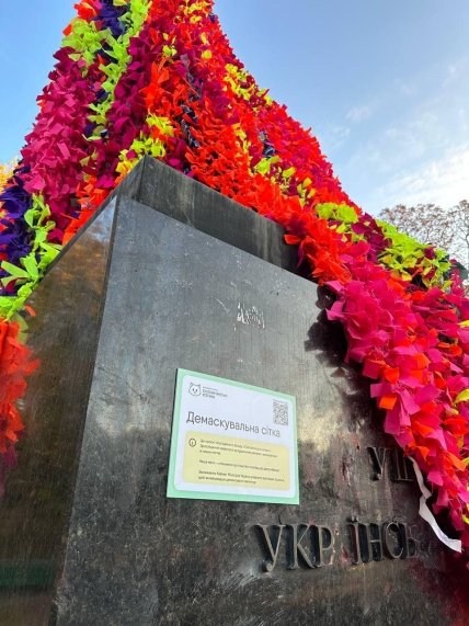 У парку імені Івана Багряного пройшов незвичайний флешмоб під назвою "Демаскуємо ворожу культуру". Учасники акції вирішили "приховати" пам’ятник Олександру Пушкіну, який встановлений на вході до парку, яскравою сіткою.