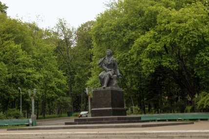 У парку імені Івана Багряного пройшов незвичайний флешмоб під назвою "Демаскуємо ворожу культуру". Учасники акції вирішили "приховати" пам’ятник Олександру Пушкіну, який встановлений на вході до парку, яскравою сіткою.