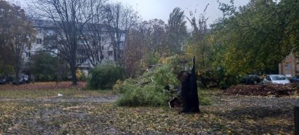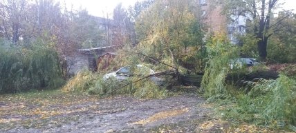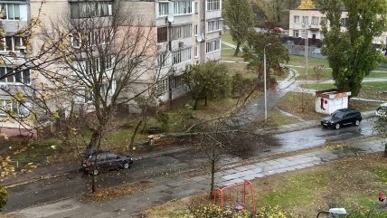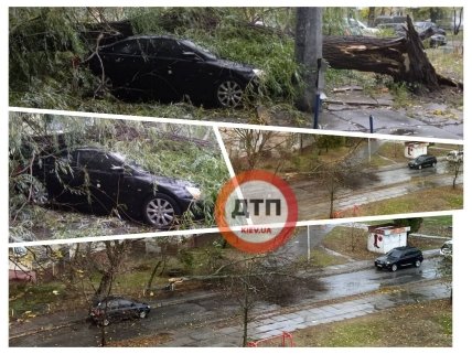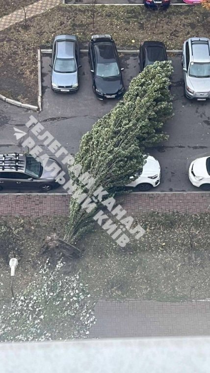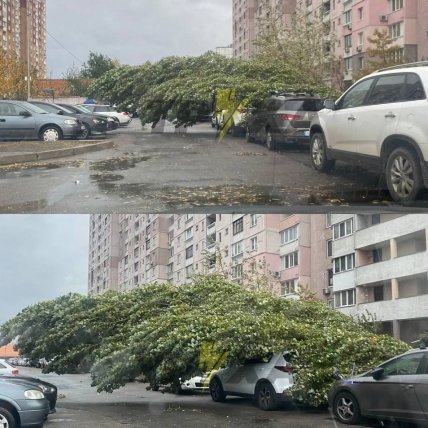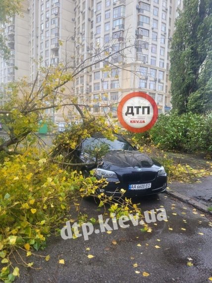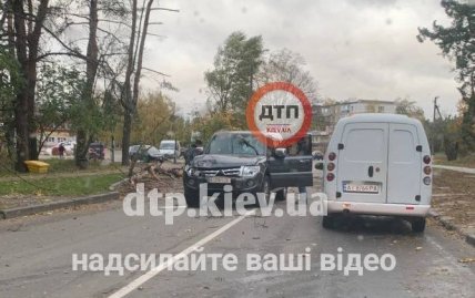 Деревопад помітили також на вулиці Парково-Сирецькій, де постраждав елітний БМВ, а також на вулиці Прирічна 17А. Через дерев, що впали, проїзд транспорту тимчасово обмежений.