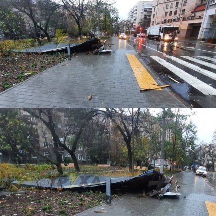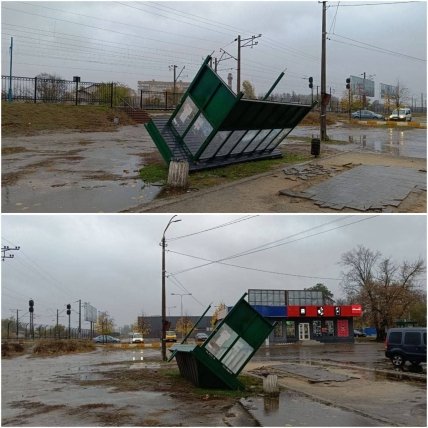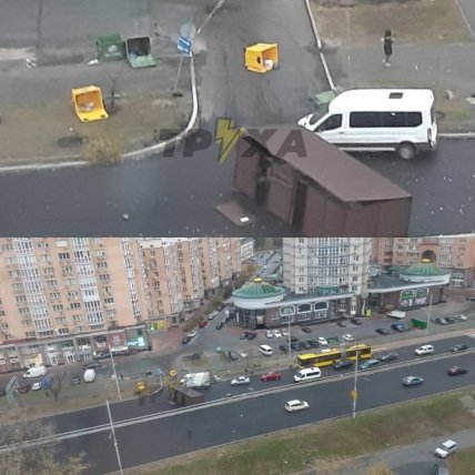 Крім того, на проспекті Івасюка винесло конструкцію, якій огороджують звалища, а сміттєві баки вітер рознесло дорогою. А в деяких районах вітер перегорнув зупинку громадського транспорту.