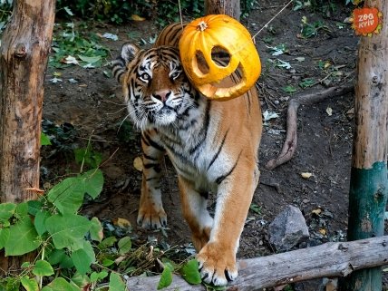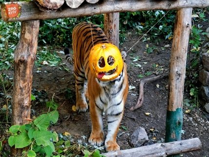 Лемур і тигр із гарбузами замість голів: у київському зоопарку влаштували для звірів Гелловін (фото, відео)