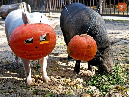 Минулими вихідними у київському зоопарку пройшло незвичайне годування — тварин пригощали гарбузовими "світильниками Джека". Цей захід був присвячений святкуванню Геллоуіна, який традиційно відзначають 31 жовтня.