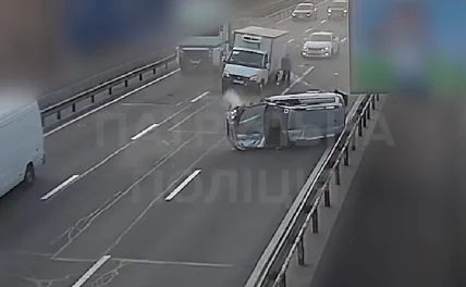 Чоловіка не зачепило дивом: на київському мосту перекинувся легковик, епічне відео