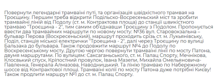 Днями на сайті електронних петицій Київської міськради з’явилася пропозиція щодо організації швидкісного трамвая на Троєщину — історичну місцевість столиці на лівому березі Дніпра. Автор петиції детально розписав маршрут і доклав схему.
