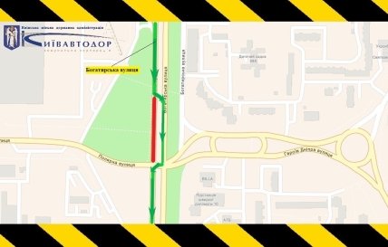 Відомо, що з 15 по 21 листопада рух транспорту буде обмежено по правій смузі вулиці Богатирської, що в Оболонському районі Києва.