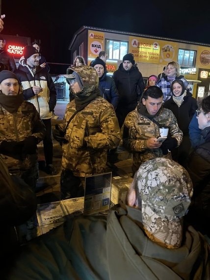 Так, увечері в четвер, 16 листопада, на виході зі станції метро "Героїв Дніпра", що на Оболоні, представники благодійного фонду розгорнули пункт збору готівки для допомоги ЗСУ. Збір проводили молоді хлопці, які були одягнені в мультикам — універсальний камуфляжний малюнок на одязі.