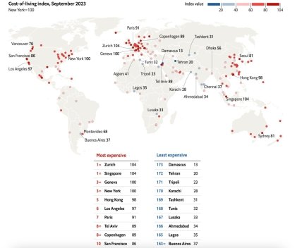 Сінгапур та Цюріх розділили між собою перший рядок у рейтингу найдорожчих міст для проживання в світі. Київ же посів 132-е місце з 173-х представлених у цьому списку.