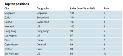 Цікаво, що Сінгапур вже вдев’яте за одинадцять років посідає перше місце. Рейтинг опублікував Economist Intelligence Unit, який є дослідницьким та аналітичним підрозділом медіа-компанії Economist Group.