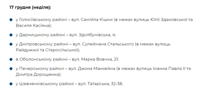 У неділю, 17 грудня, продуктові ярмарки відбудуться за наступними адресами: