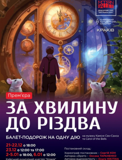 Балет "За хвилину до Різдва" – це подорож до світу магії та дива, де історія розпочинається з реальності, але швидко перетворюється на світ ілюзій, де правда переплітається з вигадкою, а фантастичне змішується з буденним.