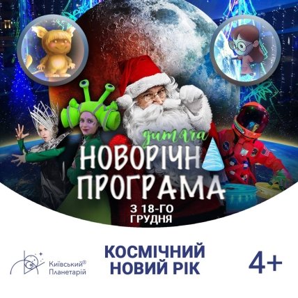 Особливість новорічної програми зумовлена унікальним поєднанням тематичних подій у форматі повнокупольних фільмів Київського Планетарію з розважально-театральними перформансами на новорічну тематику.