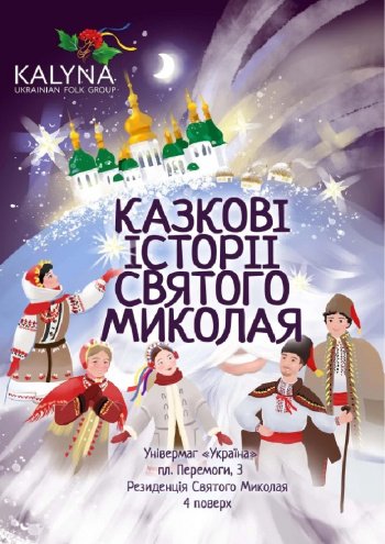 Зустрічаймо зимові свята яскраво, весело та незабутньо разом з Українським академічним фольклорно-етнографічним ансамблем KALYNA. На вас чекає цікава подорож разом з Святим Миколаєм у чарівний світ української зими зі своїми старовинними традиціями та таємничими пригодами.