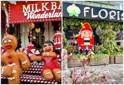 Тут можна зустріти Лускунчика, казкових оленів та інших цікавих персоанжів. Різдвяний декор біля квіткової студії допоможе вам відчути дух свята і зробити кілька яскравих фотографій.