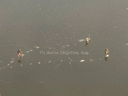 Так, на Оболоні група чоловіків з рибальськими снастями вийшли на тонкий лід, який покрив води затоки Оболонь. Навіть з першого погляду видно, що льодове покриття тут ще ненадійне і перебувати на ньому дуже небезпечно. Однак любителів зимової риболовлі нічого не збентежило і вони спокійно ходили по льоду, іноді навіть збираючись у групи.