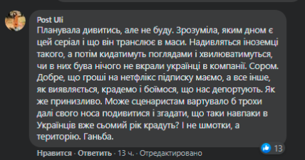 У мережі українці обурені подібною стереотипністю. "Це прикро і негідно зображати так українців у серіалі! Дешева пародія на якісне кіно!", "Планувала дивитися, але не буду. Зрозуміла, яким дном є цей серіал, і що він транслює в маси. Надивляться іноземці такого, а потім кидатимуть поглядами і хвилюватимуться, чи у них нічого не вкрали українці в компанії", — пишуть у коментарях до анонсу другого сезону на сторінці україномовного Netflix у Facebook.
