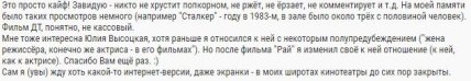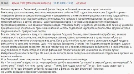 "Дорогі товариші!" сподобався глядачеві. У відгуках відзначили як і сам сюжет фільму (хоч і з деякими історичними недоробками), так і гру Висоцької.