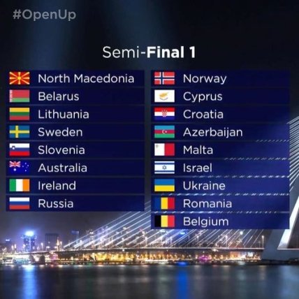 Результати жеребкування з’явилися сьогодні, 28 січня.Оголошення країн-учасниць відбулося у Роттердамі. Ведучими жеребкування стали голландська акторка Шанталь Янцен, співачка Едсілія Ромблі та коментатор Ян Сміт.
