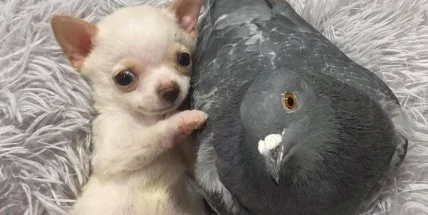 Щеня чихуахуа та голуб стали друзями.