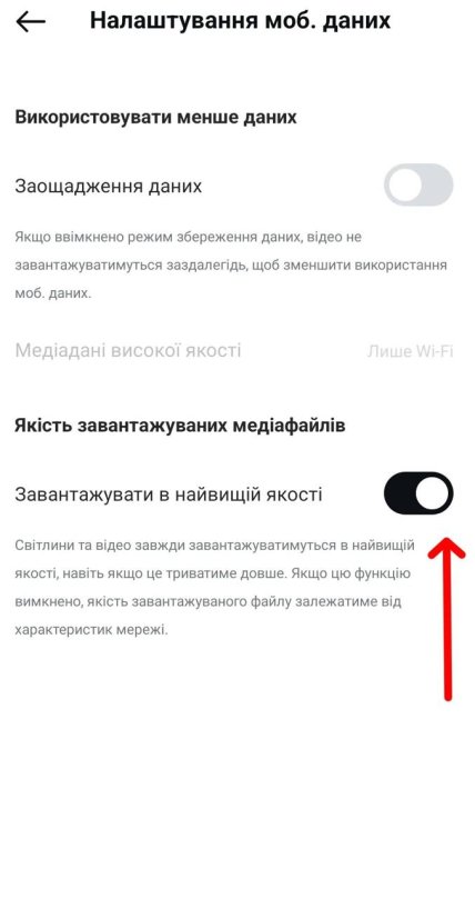 Після ввімкнення цього налаштування відео будуть завантажуватися з найвищою доступною якістю, хоча час завантаження може збільшитися, якщо з'єднання в мережі повільне.