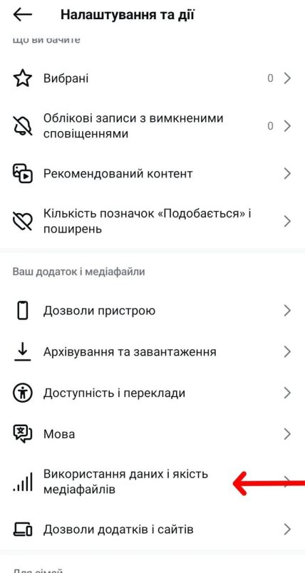 • Оберіть і торкніться "Використання даних та якість медіа"