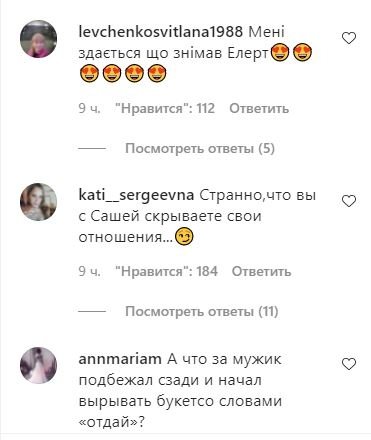 "Хм, подейкують, що зловившим букет дається прекрасний бонус у вигляді "чоловіка". Скільки чекати, хто знає?)" — підписала ролик актриса, на що отримала відповідь від Еллерт в коментарях.