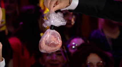 Також, відзначимо що MELOVIN ошелешив зал і глядачів своїм подарунком для прими-балерини Катерини Кухар. Мабуть, артист занадто буквально сприйняв девіз нового танцювального сезону "Танцюй серцем" і підніс судді реальне "живе" серце.